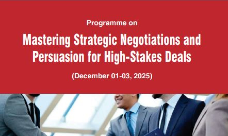 This intensive three-day program will equip PSU leaders with structured negotiation frameworks, advanced persuasion techniques, and multi-stakeholder management skills. Participants will learn to plan negotiations strategically, leverage data-driven insights, manage conflicts, and confidently navigate cross-functional and multi party discussions. The program integrates real-world case studies, simulations, and Al-driven negotiation strategies to ensure immediate applicability in government contracts, large-scale procurements, workforce negotiations, and high-value sales engagements.